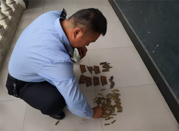 接到报警后,派出所民警火速赶到现场,对子弹和疑似爆炸物进行仔细检查,发现一共有4种型号的子弹166颗,火雷管18根。民警依法对子弹和火雷管进行收缴。