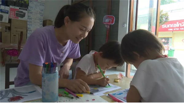 如今,四胞胎“吉、祥、茹、艺”已经上学前班。放学后,张伟搬出桌子,铺开画纸,拿出画笔,四胞胎放下书包,围坐在一起,开始画画。
