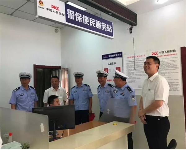 6月7日上午,阜南县公安局交通警察大队与人保财险阜南分公司联合建设的全县首家“警保便民服务站”揭牌仪式在我县人保财险分公司举行,阜南县交警大队副队长陈建军、副教导员李振、车管所负责人汪浩、车管所指导员陈龙勋以及人保财险阜南支公司经理李亚东、副经理王希胜等人参加了活动。