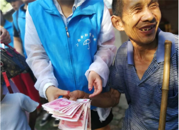 阜阳小雨伞爱心协会;部分志愿者(爱心人士)2018年7月15日到郜台乡、中岗镇、苗集镇看望独居老人,残疾人和贫困家庭,志愿者为他们送去生活物品和慰问金。公益献爱心,真情暖人间!倡导无私奉献新风尚,谱写