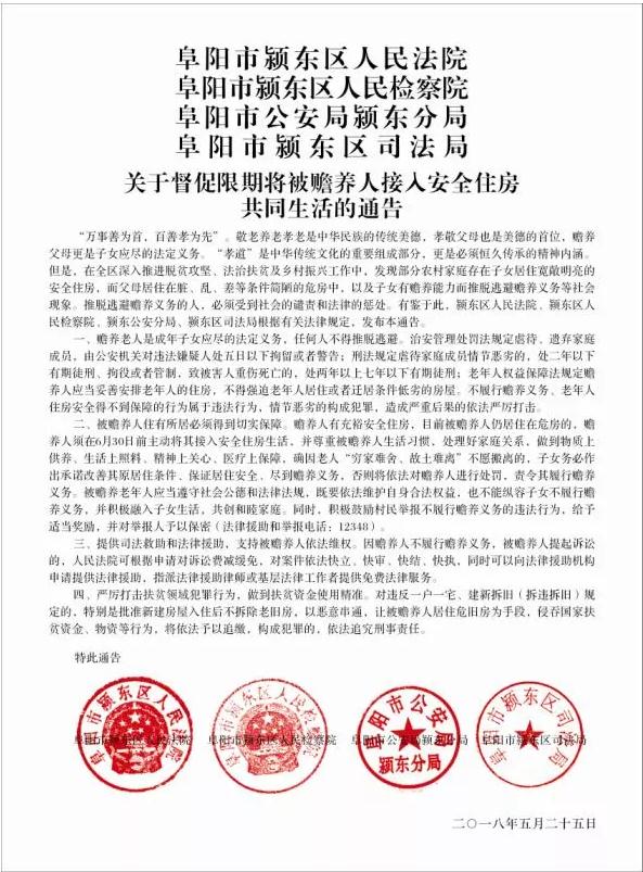 在阜阳,可能有这样的情况:孩子们一家住在宽敞舒适的房子里,而父母却远在农村老家,独自住着几十年前破旧不堪的老房子。 日前,阜阳市颍东区人民政府发布《关于督促限期将被赡养人接入安全住房共同生活